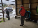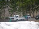 | 標高が下がるにつれ、まずマンサク、ついでキブシ、カタクリ、アズマイチゲ、ショウジョウバカマの花が咲いて春が次第に里から山に登って来ていると教えてくれた。涸沢の端にある威守松山夏道の分岐に到着して、往路と同じく登山者の踏み跡を探して目を配ったが何も見つからずそのまま清水集落ゲートに向かった。ゲートの外、除雪末端には乗用車や軽トラックが多数駐車していた。桑ノ沢で会った狩猟者の数より多いようなのが不思議だ。 清水バス停で大看板の案内地図を見上げてイモリマツヤマの登山路を再確認した。登山口がバス停と巻機山キャンプ場の間にあるように書いてある。これがQさん調査のイガシラ登山口なのだろう。バス停脇の駐車場では巻機山から下山してきたのか、濡れた装備を整理して車のトランクに積み込んでいる登山者がいた。 |