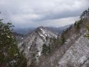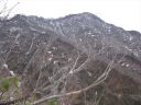 | 直ぐに樋倉橋についた。左手に「徳網山登山口」道標柱がある。一度は見落としたが引き返して(右手)農道に入った。すでに車二台が駐車していた。「人気のある山だな」と思うが、Qさんにとっては付け足しの山のはずだ。尾根の向こうの丸い山が徳網山であろうか。周囲は残雪が覆う田(?)畑であった。 |