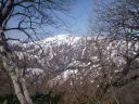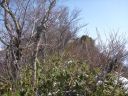 | 県境尾根の激薮を進んでコル手前で待つQさんと合流した。檜岩屋山への稜線を睨んでQさんは託宣する。「すでに4時間、目の前に続く薮を漕いで檜岩屋山を越えるにも計画した時刻をはるかに過ぎる」との見解だ。「その先、袖朝日まで70歳を過ぎた我々(Qさんはすでに74歳)が往復できるのか? そこまでするか?」とおっしゃる。話し合いの結論は「ここで撤退する」だ。今冬の小雪・暖冬をうらめしく思った。 |