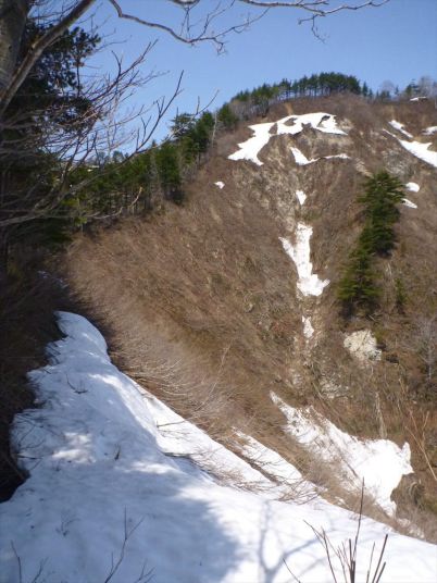 雪堤がズレ落ちたのは下の残雪が無くなったせい