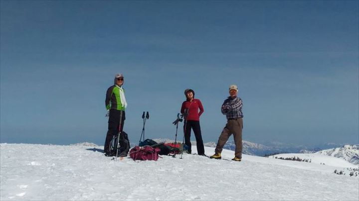 中門岳への稜線で一休み 真っ青と真っ白で気分最高