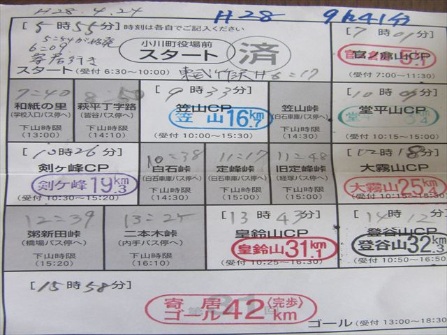 こんな風にスタンプを押してもらい、途中の時間切れは下ろされます