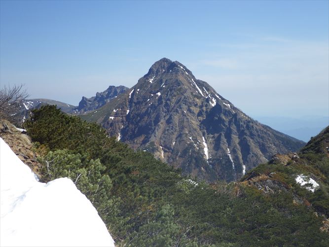 縦走路分岐から望む八ヶ岳の主峰「赤岳」(2899.4m)