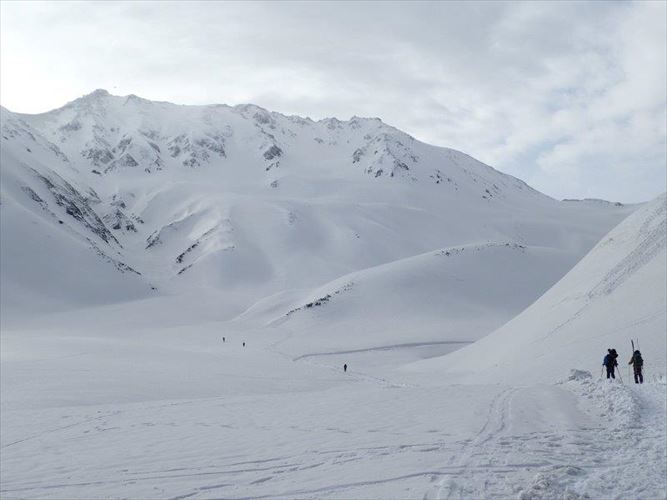 立山連峰へ登山者が向かいます、右が一ノ越