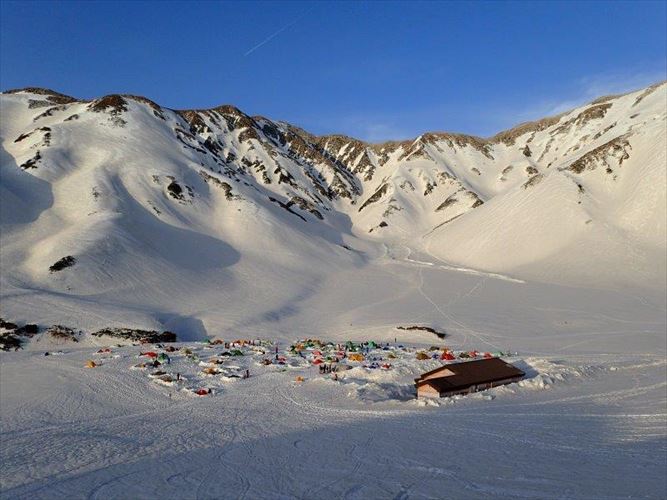 夕方の雷鳥沢キャンプ場、一日中晴れ渡りました