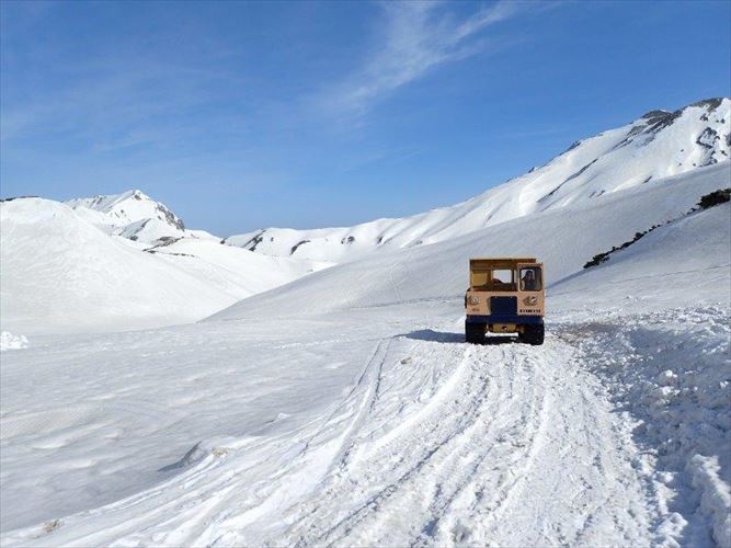 山小屋間を走る雪上車です