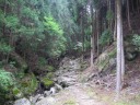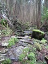 | 5/15 大雲取越 那智大社〜小口まで14.5kmのハイキング→勝浦(泊) 熊野那智大社から、雲の中を行くがごとく峠を越え本宮へ向かった。 青岸渡寺の裏手から、那智高原を越え小口へ向かう、苔むした石段やアップダウンがあり楽しめた。 熊野三山の神々が集まって談笑した場所と言われる「円座石」など古道をたっぷり味わえた。 |