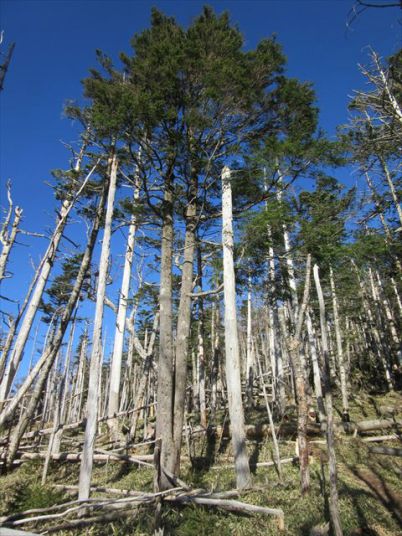 枯れ木、倒木の中頑張っている夫婦カラ松