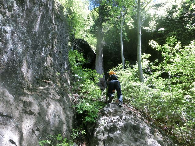 岩場を這うように登っていきます