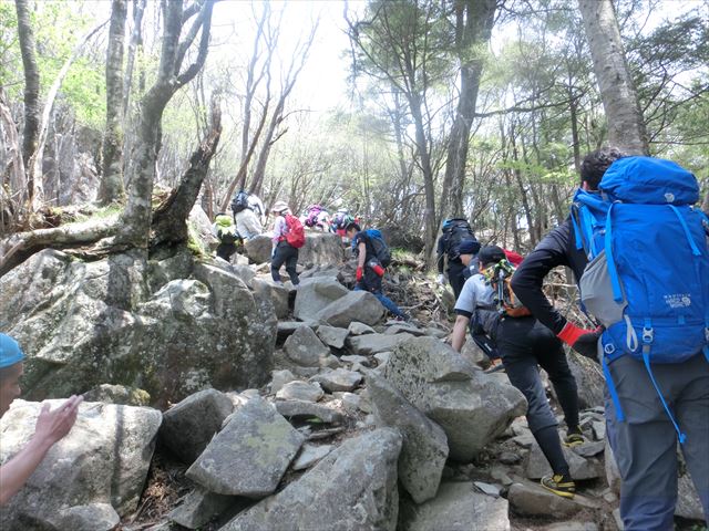 石がごろごろとした道に変わりました。たくさんの人たちが登っています