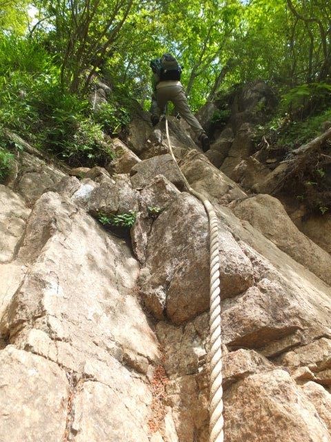 長~い岩場。だんだん険しくなります