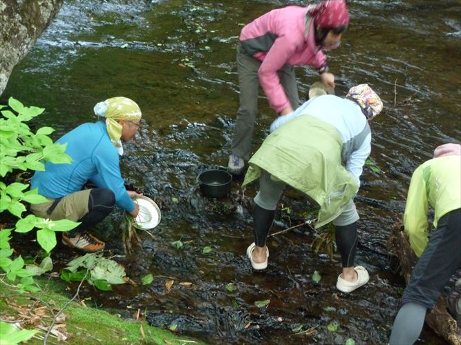 食べた後は後片付け 水草の根でこすると油もきれいにとれます