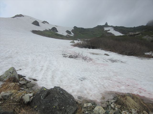 ベンガラに沿って進む、夏ルートわかりにくいので頼りになる
