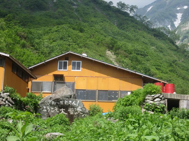 白馬尻小屋、誰か屋根にいる
