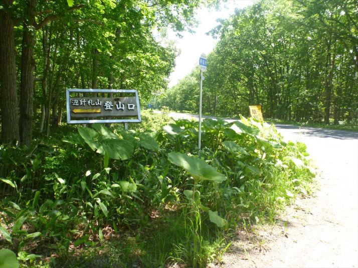 入り口 メイン道路脇の薮に隠れた立派な登山口道標あり