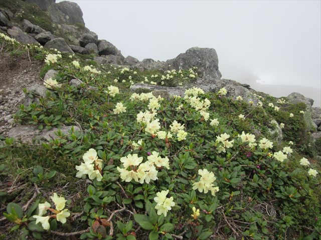いよいよトムラウシへの登り、キバナシャクナゲが見事