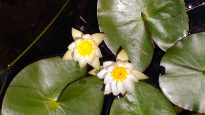 ヒツジクサ 水面を、きれいなルリイトトンボがスイスイ飛んでいましたが写真に撮れなくて残念