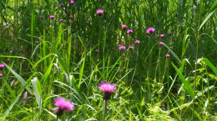 アザミが夢を見るようにふんわり咲いています