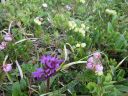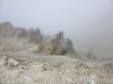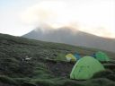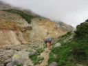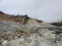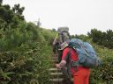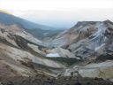 | 【コメント】十勝というとチーズを思い出し、十勝平野ののんびりした牧場をイメージしていたが十勝岳の火口周辺のガスや岩石、溶岩地帯の砂礫を歩いてみて、改めて活火山であることを認識した。 特に、山頂に向かう痩せ尾根は左側は切れ落ちた荒々しい山容、右側は雪渓とお花畑を抱いたのびのびとした斜面。まるで天国と地獄のようだった。 噴火のたびに登山道が変わるということで、安政火口周辺ではモクモクと噴煙を上げて硫化水素ガスが吹き出して、地面が熱いのを感じて恐ろしいくらいだった。 十勝岳は当初は三段山からのコースを予定していたが行ってみたら通行禁止のためD尾根からのコースに変更した。 最初、取り付きの場所を勘違いして安政火口の先までも行ってしまい、夫婦岩を過ぎ、ガスの吹き出す地帯を通過して探したがGPSと地図とで間違いに気づいて戻った。 2日目の富良野岳は流石に花の百名山だけあって素晴らしいお花畑が続いていた。 又、人気が高い山で登山者も多く、私たちが早目の下山時刻だったため、登山者とかち合い、狭い登山道ではよけるのが大変だった。 多少のガスは出たが概ね天候に恵まれて、火山の山と花の山の非対称性をめいっぱい楽しめた2日間だった。 コメントM/S |