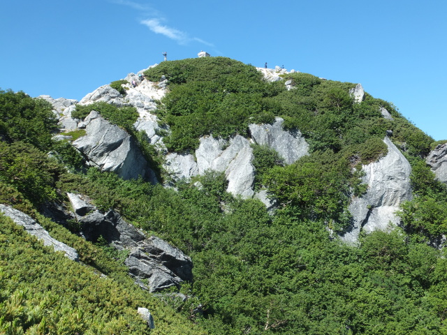 甲斐駒ケ岳頂上に建つ祠が見えてきました