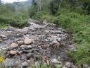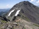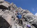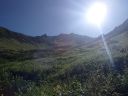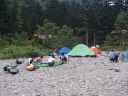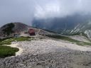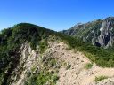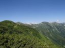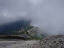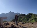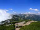 【山域】 北アルプス 槍ヶ岳 3180m 左俣岳 2674m 樅沢岳 2755m 双六岳 2860.3m 弓折岳 2595m 大ノマ岳2662m 抜戸岳 2812.8m 笠ケ岳 2897m 【期日】 8月5日(金)〜8月9日(火)(4泊5日) 【メンバー】 N.K 外部(H.H) 【コースタイム】 8/5(金) 8:54新穂高温泉着―なべ平駐車場―9:30登山道―右俣林道 − 13:23藤木九三レリーフ着−13:50槍平小屋着―14:00キャンプ地着(テント泊) 8/6(土) 6:10槍平テント場発―8:10千丈沢乗越し着―10:25飛騨乗越着― 10:40槍ケ岳山荘着―休憩―1:05槍ケ岳山荘発―13:37槍ケ岳山頂着− 14:29山荘着―14:40テント場着(テント泊) 8/7(日) 5:30槍ケ岳テント場発―8:10千丈乗越し分岐着―西鎌尾根―左俣岳― 硫黄乗越しー9:52樅沢岳山頂着―10:30双六小屋着―昼食― 12:11稜線ルートー12:49双六岳山頂着―ピストンー13:35中道分岐― 14;30双六小屋着―休憩―16;00テント場着 (テント泊) 8/8(月) 5:30双六テント場発―6:42弓折り乗越し着―弓折岳―大ノマ乗越し― 大ノマ岳―秩父平―秩父岩―抜戸岳―抜戸岩―笠が岳キャンプ地― 笠が岳山荘―13:19笠が岳山頂着(ピストン)―13:40笠が岳山荘着― 休憩―14:30キャンプ地着(テント泊) 8/9(火) 5:30笠が岳キャンプ地発―7:48分岐着―10:40笠新道登山口着― 中崎橋―11:00着風穴―新穂高温泉―ロープウエイーなべだいら駐車場着 【コメント】 北アルプスをテントを担ぎ5泊6日の山旅をした。 8/5日(金)は駐車場が大混雑。満杯。 なべだいらの駐車場まで車を止めに行き、そこから仲間が30分かけて急斜面の山道を 汗だくで降りてきました。右俣林道は遠回りをしてしまい2倍以上の距離を歩いてしまい ました。白沢出合いから滝谷出合いに来ると藤木九三のレリーフがありました。 ここで少し休憩し、槍平小屋に急ぎます。道は登りで、結構なアップダウンでした。 登山道は花が一杯咲いていおり花のロードでした。 到着した槍平小屋はきれいで、水が豊富でした。テント場はすぐ横に沢が流れ 雰囲気のいい場所でした。沢の左の橋を渡ると、破線ですが千丈乗越しへ出るもう1本の 登山道があります。いつかこの尾根道も歩いてみたいです。尾根が見えて素晴らしいそうです 小屋到着が速かったので好きないい場所にテントを張り、まずお決まりの一杯! そして着衣を乾かす。西方面のガスが上がると涸沢岳が浮かび上がるようにくっきりと姿を 現しました。素晴らしい景色です。 テント場は若い高校生のグループや大学生のグループでおおいに活気にあふれていた。 本日病人が出たため、明日はこのテンバにヘリが降りるそうで、テントをデポする人は移動 するように小屋番さんに言われていた。夜星が大きく降り注ぎ、きれいでした。 8/6(土) 今日は槍ケ岳まで直登です。千丈分岐点から飛騨乗越しがきつかった。 槍ヶ岳には、いつもとは全く反対側から着く。まず1番は、テント場探しだ。小屋に行くと、 小屋で決められたスペースに設営しなければならず、私達はCという、陽が半分しか 当たらない岩陰のところだった。小屋からは近いが、一段下の大岩の影になっているので トイレの行き帰りが斜面歩きになり、左が切れているので足元に気を使う。それ以外は静かな いい場所だった。「槍は」と見ると大渋滞。しばらく様子を見て人が少なくなったのを見越して 登り始めた。スムーズに登れた。頂上から北鎌尾根を真っ先に探して見た。懐かしい! うねる尾根。よくあそこを登って槍に登頂できたものだとあの時の感動がよみがえる。 次に探したのは今回登攀計画を立てたが、諦めた小槍だ!!なんと登攀しているでは ないか。うらやましい気持ちと、50mロープを担げるだけの体力がない自身に悔しい思いが 募る。しばし目を凝らして登攀しているパーテイを見た。同時に登攀ルートに釘づけとなる。 さて、下りようと気を取り直し下を見た時、ガ―ン!!大渋滞になっていた。待つこと、待つこと。 梯子を降りると、ガイドパーテイが、手足のおきどころ一歩一歩を、手をとり足を取る状態で 教えていたので、そりゃ渋滞するわ〜。おまけにカラビナの架け替えをしながらである。 辛抱づよく待ちやっとのことで下山。テントで早めの夕食後すぐに就寝。うとうとしだした頃だ。 「仲間が暗くて降りられない状態です。ライトをもってきていません。」と山小屋に駆け込んで 助けを求めている登山者の切羽詰まった声が聞こえた。山小屋の人は「山にいる人に携帯の 電源を入れるよう」下りてきた人に指示した。ヘッデンを持っていなくて身動きできないのだろう が、暗がりの中では、明かりがないと、相手の場所も特定できず、救助もできない。 やり取りの声に起こされ、テントの中から覗くとうっすらと心もとない明かりが岩の中腹に見え すぐまた消えた。あの場所なのだろうか。無事下山を祈ると共に再び就寝。 8/7(日)辺りが騒がしい。起きてテントから外を覗くと、私達の岩の上の通路に朝日を見よう としている登山者が列をなして大勢いた。私達は、温かいテントの中でぬくぬくとご来光を見た。 美しい、神