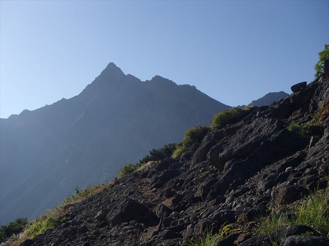 朝みたテンバの槍が遠のいていきます
