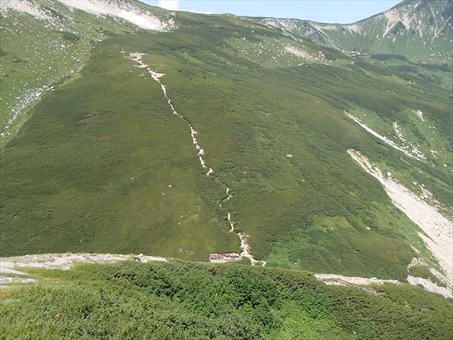 はるか下に双六小屋が見えてきました