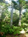 | 二児山東峰と西峰分岐のシラベ林は「山頂渉猟」の頃(1985)と異なり、踏み跡も目印もはっきりして苦労することはない。初心者向きの山道になっていた |