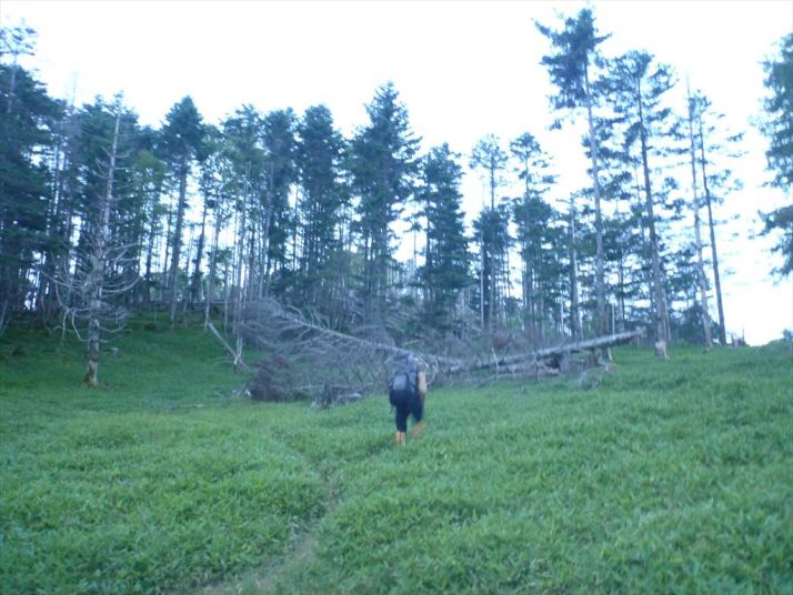 朝露が降りた笹原に