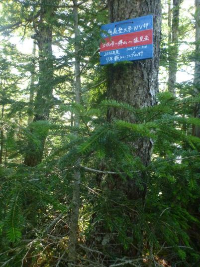 樺山山頂慶応義塾大学WV部の板、なんと昨日通過