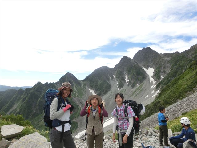 穂高の山ともお別れです。取り付き点にて