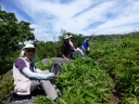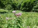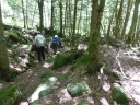 【メンバー】 L M/I S/W I/S N/M S/T 【コースタイム】 新座駅発6:10 → 車山高原ビジターセンター9:25〜9:50 → 車山乗越11:00 → 沢渡(昼食)11:45〜12:30 → 第五園地12:55〜13:05 → 車山肩13:30〜13:55 → 車山山頂14:30〜14:55 → スカイライナー(リフト)乗り場15:30 → ビジターセンター発16:00 (N/M) 好天の中、暑さを避ける為霧ヶ峰車山へ行ってきました。 連休前日とあって高速道路、一般道とも渋滞もなくスムースに車山高原に着いた。 リフト駐車場も初の山の日前日とあって駐車スペースもかなり空きがあった。 駐車場から蝶々深山方面を歩き出す。 標識は車山山頂・八島湿原・白樺湖と表記してあるが暫く歩くと正面に蝶々深山が見えるが 沢渡までの道はあまり人が歩かないのか道が草に覆われて藪漕ぎのような状態であったが 車山肩の売店のソフトクリームで喉を潤し、山頂ドームを目指す。 山頂はリフトでこられるのでかなりの賑わいである。連休前だが夏休み中だからだろう。 山頂からの下山はリフト「スカイパノラマ」間は一応歩いたが「スカイライナー」間は微風を |