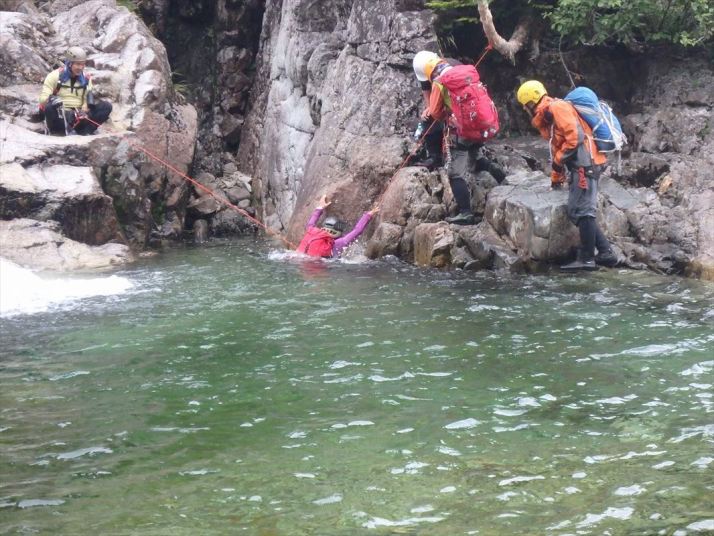 深いので泳いで渡ります 足が着かないけどロープを張ってもらっているので安心