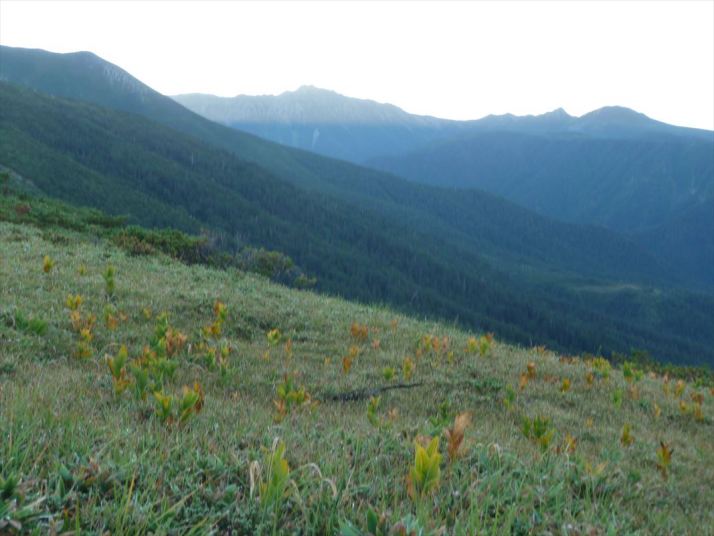 水晶岳に朝日があたってきました