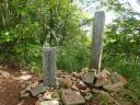 【期 日】 2016年9月3日 【メンバー】 S.A 【コースタイム】 登山口駐車場7:25―7:28深田記念公園7:30―7:50分岐―(林道を 横切る)―8:25女岩手前― 9:00女岩のコル(稜線)9:10―(深田久弥 終焉の地)―9:30茅ヶ岳山頂9:37―(岩穴上の大岩下で大休止)― 10:40金ヶ岳山頂―11:47林道三叉路―11:55登山口(明野ふれあいの 里で大休止)―(明野林道)― 14:10往路登山口へ下山 【コメント】 11月6日(日)の会山行の下見である。 日本百名山選定者・深田久弥氏終焉の地である茅ヶ岳(1,704b)に登り、金ヶ岳(1,764b)を経由して一周してきまし た。 登山口から数分の深田記念公園で「百の頂きに百の喜びあり」‐深田久弥 記念碑の写真を撮り出発、ゴロゴロ石の 平坦な山道を20分程で分岐点に着き、 直進して女岩経由の道をたどる。 いくらか傾斜道になるが、登山口から林の中1時間で女岩手前に到着した。 この付近は落石が多く立ち入り禁止看 板とテープが張られていた。 ここからいきなり急な登りになるがジグザグ道なので、ゆっくりと30分足 らずで女岩の コルと呼ばれる稜線に出た。 水を飲み一呼吸して歩き出したら3分程で尾根上に深田久弥氏が脳出血で倒れた地点があり石碑に一礼をして、 細い岩がらみの急な尾根道を登ると間もなく茅ヶ岳山頂に到着した。 女岩から休みを入れて1時間少しで山頂へ、登山口から約2時間、危険な 個所もなく登りやすい山であった。 眺望は曇りのため今一、時折晴れ間が出、下の平野と鳳凰三山が少し見え た程度であったが晴れていれば富士山 、南アルプス、ハヶ岳、奥秩父と素晴 らしい景色を見ることができるであろうが、涼しい秋の登山日和となった。 頂上で居合わせた人に写真を撮ってもらい、すぐ金ヶ岳へ向かう。 急な細い尾根道を注意しながら下り、 まもなく鞍部を通過し岩でふさがれ た大きな穴をくぐり、涼しい稜線上で大休止とした。 ここからは急な登りとなるが、木々の中のいくつかのピークを越え金ヶ岳 山頂に出た。ここまで休みを入れて茅ヶ岳 山頂から約1時間であった。 さて、金ヶ岳からの急な下りである。 途中の尾根上に崩壊箇所が2ヶ所あるがトラロープが張られ新しい道が脇 に 作られていて特に問題なく通過し、急な下りも整備されていた。 やがて傾斜が落ちて林の中の爽やか気分での下りとなり、金ヶ岳山頂から 1時間10分程で林道三叉路に到着した。 アスファルトの林道を横切りさらに下ると「明野ふれあいの里」キャンプ 場脇の登山口に到着した。 本番の会山行の終了、バス待合せの地点である。 午後からは快晴の暑い天候となり、今回は深田公園に車を置い ての山行で あったため、ここから山麓沿いのアスファルト道を炎天下の中1時間20分の 歩行を余儀なくされ往路登山口まで、最後に疲れ果てた下見山行となってし まった。 又、単独行なので最近の熊出没ニュースに恐れ、金ヶ岳からは二人組とす れ違っただけ、時折笛を吹きながらの下 山となったことは言うまでもない。 |