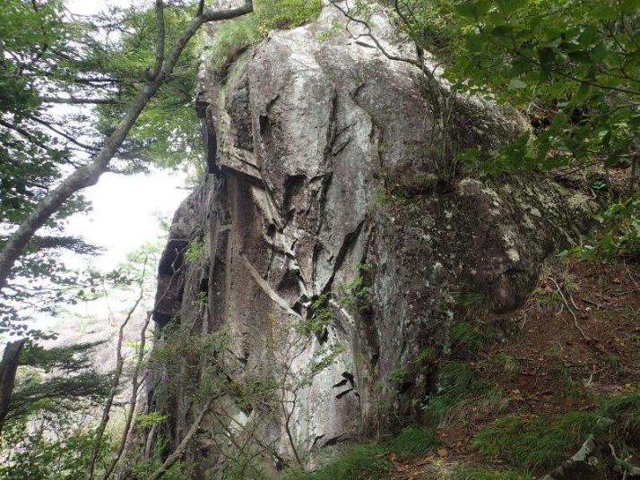 この岩の下で昼食としました