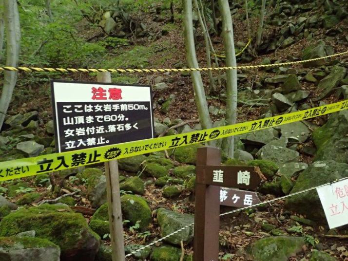 女岩手前50メートル地点の危険個所
