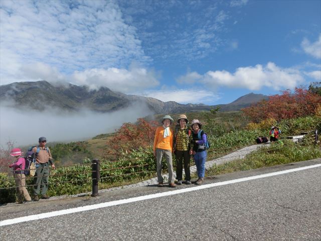一緒に登った所ハイの人たちと一緒に。見えている山は、大日岳です