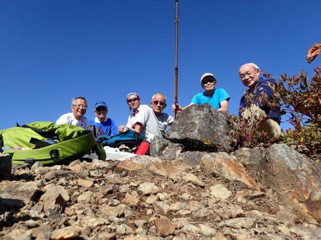 山頂にてセルフタイマー使用、この後ずっこけてAが腰を捻りました