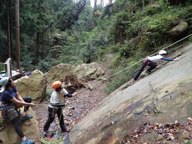 外岩場は初めてのSさんの登り始めです、確保はIさん