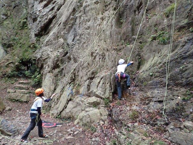 Iさん確保で(トップロープで)、Sさんが登ります