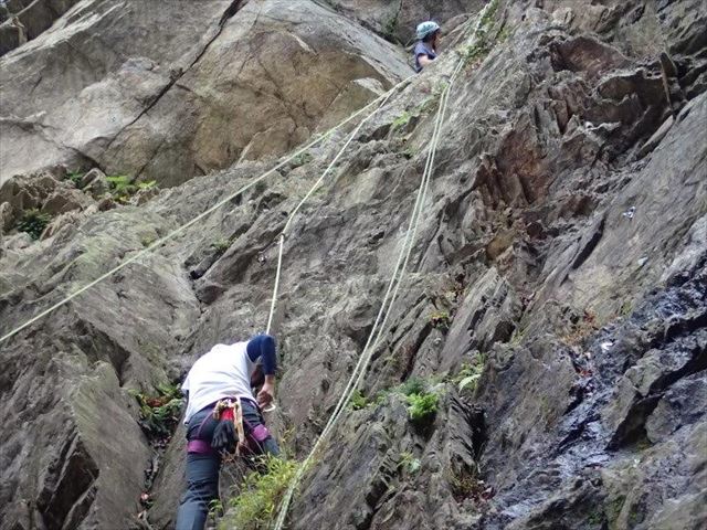 Sさん、ヌンチャクを回収しながらの登攀です