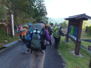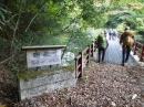 | 3日目(10/29)三浦口〜十津川温泉 昨日の雨は上がり、農家民宿「山本」の車で、三浦峠登山口へ送っていただく。 船渡橋を渡り三浦峠まで700メートルの登りである。登りはじめるとすぐ石畳になり風情はあるが登りづらい。吉村家跡にある防風林はなかなか迫力がある。 三十丁の水で喉を潤しゆっくりと登っていくと、三浦峠山頂で待ち合わせていた奈良在住の会友Tさんが到着しない私達を気遣い、迎えにきてくれる。再会を喜び、話はとまることなく、三浦峠山頂に到着。 風は強いが休憩所、トイレもあるので昼食タイムとなり、その後ブナやナラの森を下り、西中大橋へ下山する。ここから十津川温泉昴の里までは2時間の車道歩きになるがTさんの車でピストン輸送をしてもらう。おかげで源泉掛け流しの温泉を十分味わい、楽しい交流の輪が広がりました。 (S.O記) |