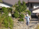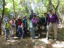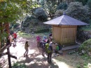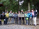 | 4日目(10/30)十津川温泉〜熊野本宮大社 昴の里から20分ほどで果無峠登山口に到着。いきなり石畳の急坂である。やがて果無集落に到着。「天空の里」と呼ばれるこの地区は昔ながらの風情のどかな集落である。 有名な世界遺産の石碑前で揃って写真を撮り、いろいろな表情の三十三観音像の石仏を数えながら、登っていく。山頂に眺望はなく、昼食を済ませ、急な箇所もある下りを、休憩を取りながら慎重に歩く。八木尾の集落に出て、民家の間を抜けると八木尾バス停がある。 十津川に戻るTさん、Kさんのバスの時間を考え、4キロ程を残し、ここからバスで熊野本宮へ向う。熊野本宮でバスを降り、道路を横切り、立派な鳥居に続く階段を上り本宮を参詣し、山行が無事に終了したことを感謝する。 (S.O記) |