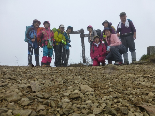 伯母子岳山頂に到着 (何も見えません・・・)