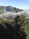 【期日】 2016年10月30日(日) 【メンバー】 CL Y.S S.T 他40名 【コースタイム】 柳瀬川駅6:15−バス―マウントジーンズスキー場10:00・・・・・ゴンドラ山頂駅10:20− 清水平12:40−三本槍ヶ岳13:15−マウントジーンズスキー場15:40− 柳瀬川駅着21:30 【コメント】 県連ハイキング委員会主催の交流バスハイキングに、新座山の会から2名で参加した。大型バスに40人位乗って 、出発した。マウントジーンズスキー場に着き、ゴンドラで山頂駅まで行ったが、ゴンドラからの眺めは、紅葉真っ 盛りできれいだった。お天気は良かったが、気温が低く寒かった。さっそく6班に分かれて、頂上を目指した。登る ほどに、霧氷が現れ、眺めが良かった。最初のうちは日も差していて、木々を揺らすと「バラバラ」と音がして氷が 落ちたが、清水平を過ぎてからは気温もぐっと低くなり、揺らしても落ちそうになかった。何しろ40数人の団体なの で時間もかかるので、昼食は行動食となった。立ち止まっておにぎりを食べ、また登り始めた。頂上は素晴らしい 眺め(霧氷の世界)だったが、風が強く寒いので、写真を撮ってすぐに下山を開始した。バスが待っているところに 16時には到着することができた。帰りは渋滞に会い、時間がかかったが、美しい霧氷を堪能することができ、よそ の会の人たちと交流もできて、楽しいバスハイキングであった。 Y/S記 |