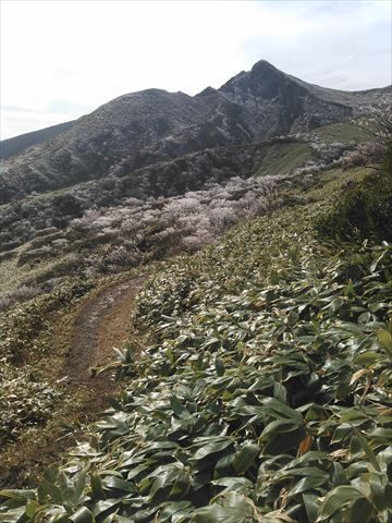 周りの白いのは霧氷です