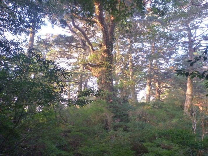 朝日の射光が林に