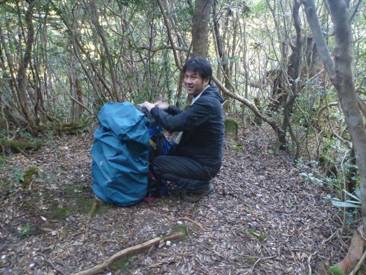 千葉から来た単独行の男性と、テント場によい平坦地