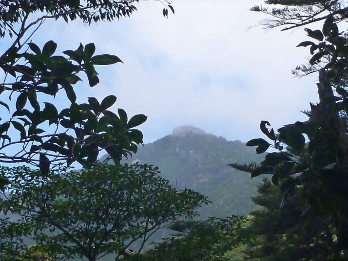 振り返ると葉の間にジンネム高盤岳、とうとどこにも取り付きが無かった